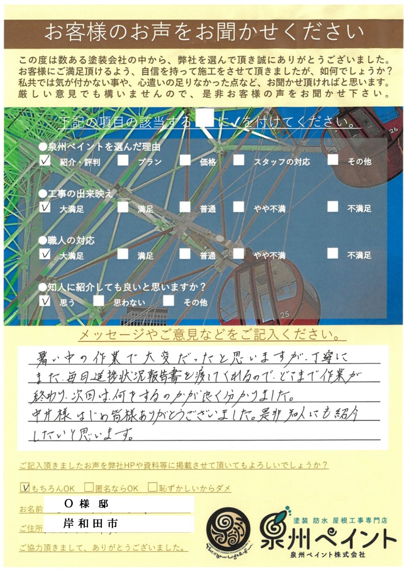 ~ 岸和田市で外壁塗装工事をされたお客様からの声 ~