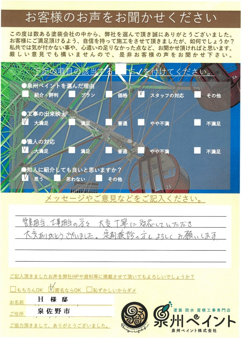 ~ 泉佐野市で外壁塗装工事をされたお客様からの声 ~