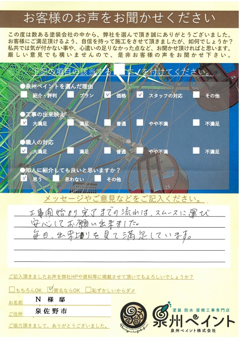 ~ 泉佐野市で外壁塗装工事をされたお客様からの声 ~