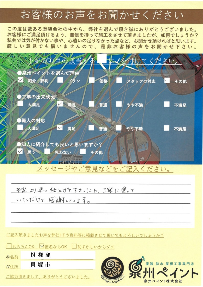 ~ 貝塚市で外壁塗装工事をされたお客様からの声 ~
