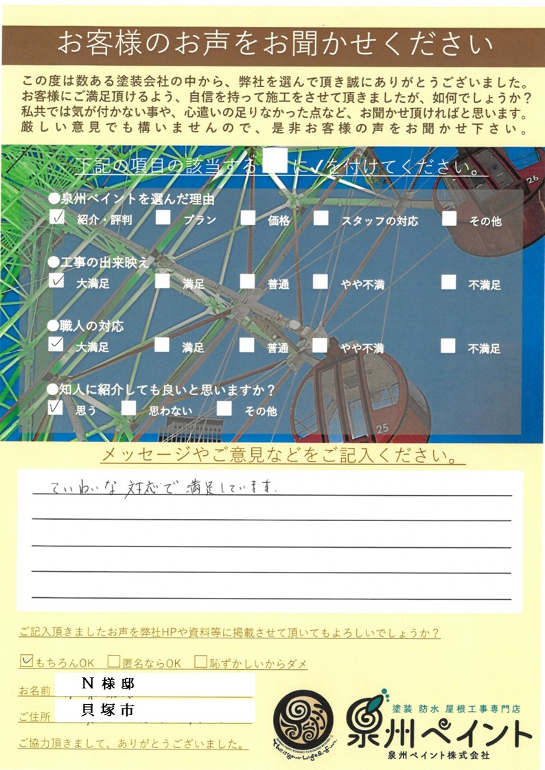 貝塚市 N様邸 外壁塗装 屋根塗装 2026/1/31